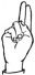 На ћирилици написано ВЕЉКО ДОНЧИЋ састоји се из 11 слова [?]. Исписано ћириличном једноручном азбуком за глувонеме: